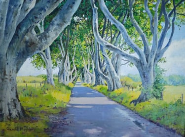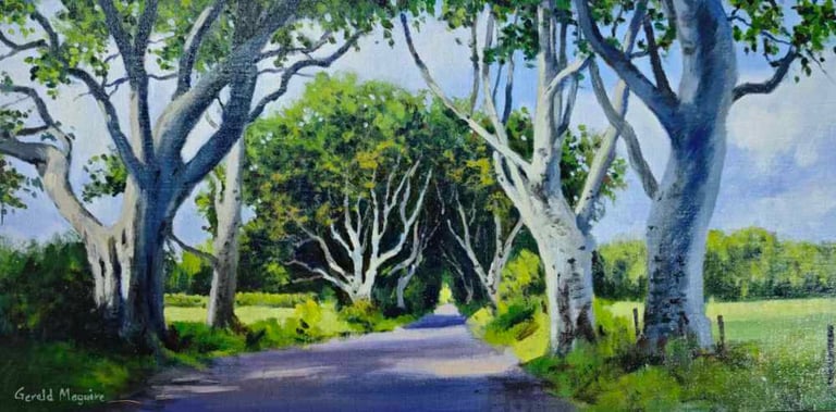 The Dark Hedges. Stranocum Co Antrim Oil on Canvas Board 24"x 18" £1250